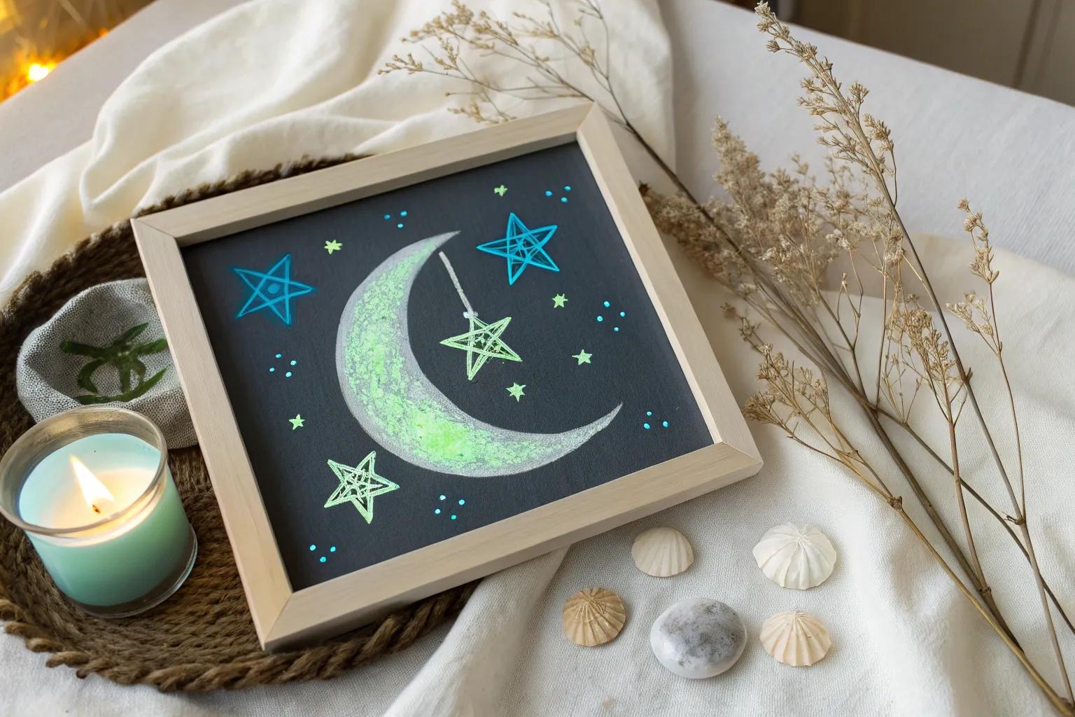 Transform a simple silhouette of a tree or building against a night sky. Use glow paints to add twinkling stars that come alive in the dark, creating a magical effect.