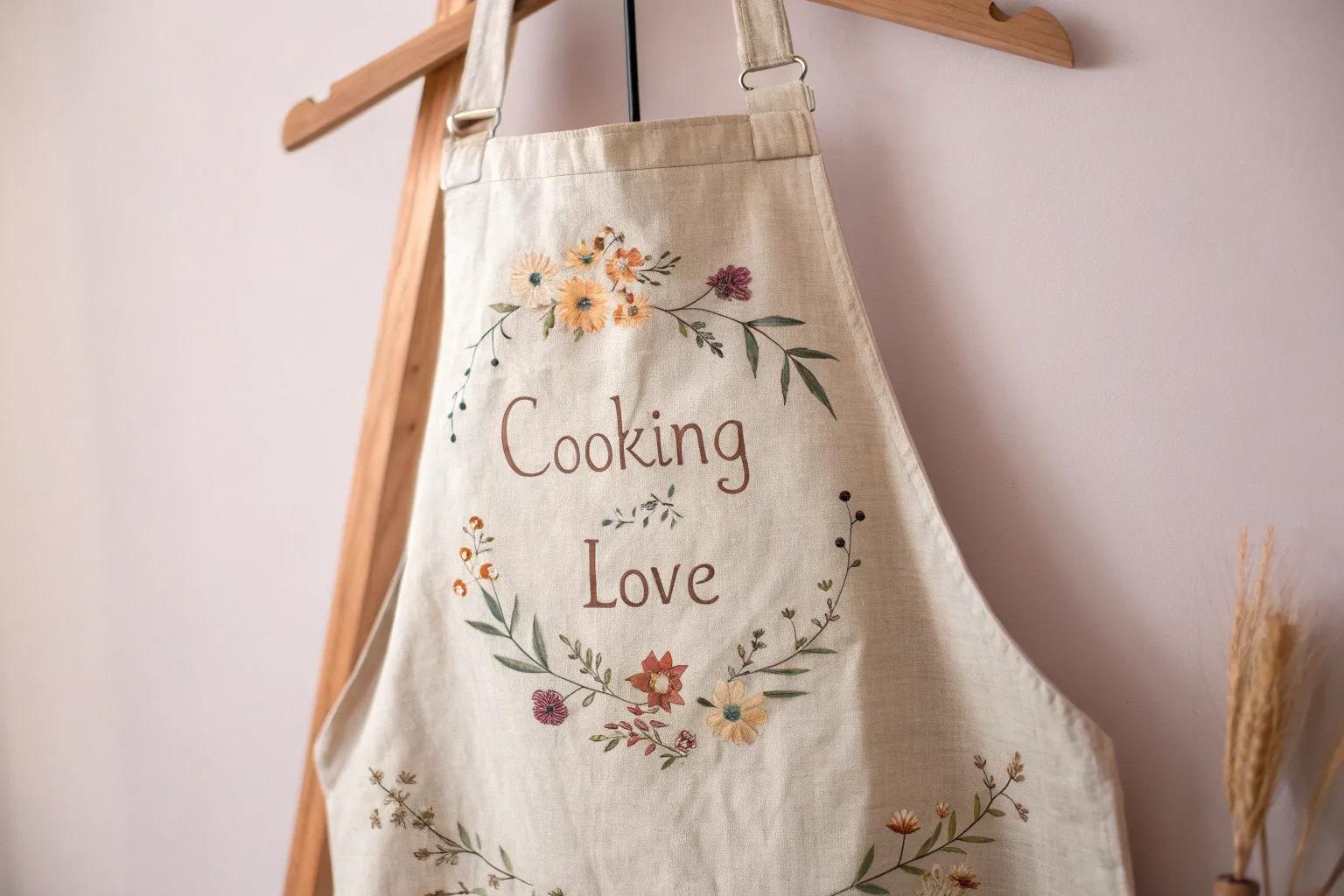 - Embroidered Floral Apron: Enhance your kitchen with an apron featuring charming floral embroidery and bold colors.