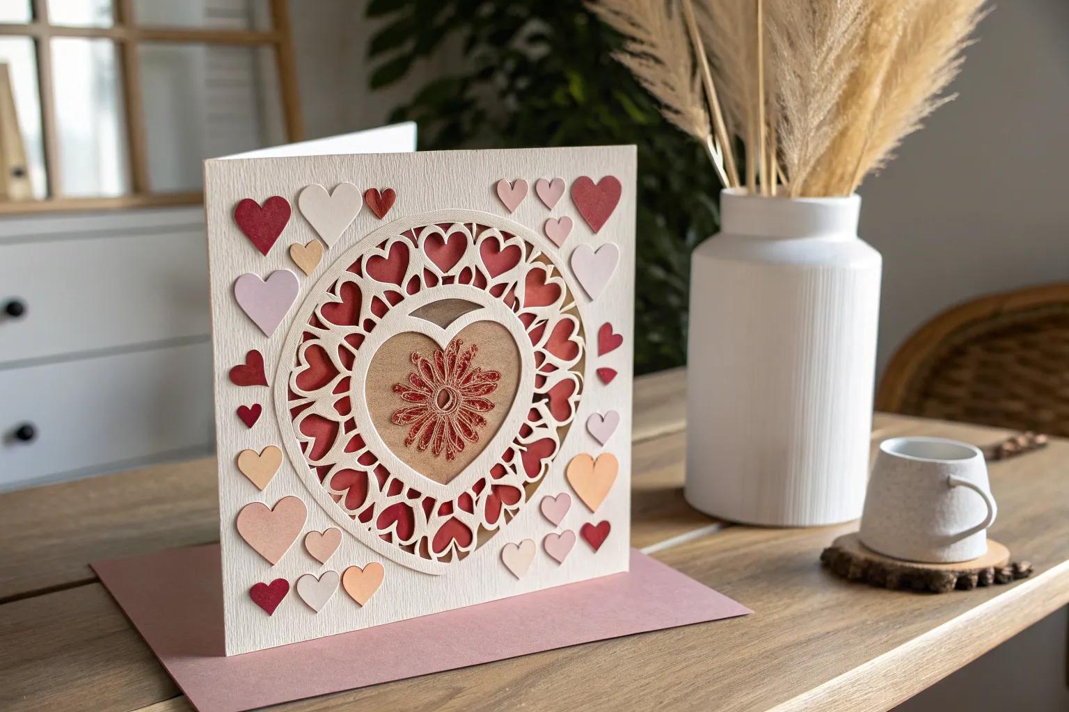 Fold a simple origami heart design and attach it to the front of your card. This adds a lovely dimension and is perfect for a quick yet impactful design.