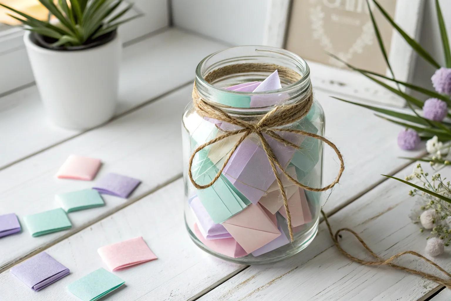 - Colorful Note Cards: Brighten your jar with colorful note cards, ideal for writing heartfelt surprise messages.