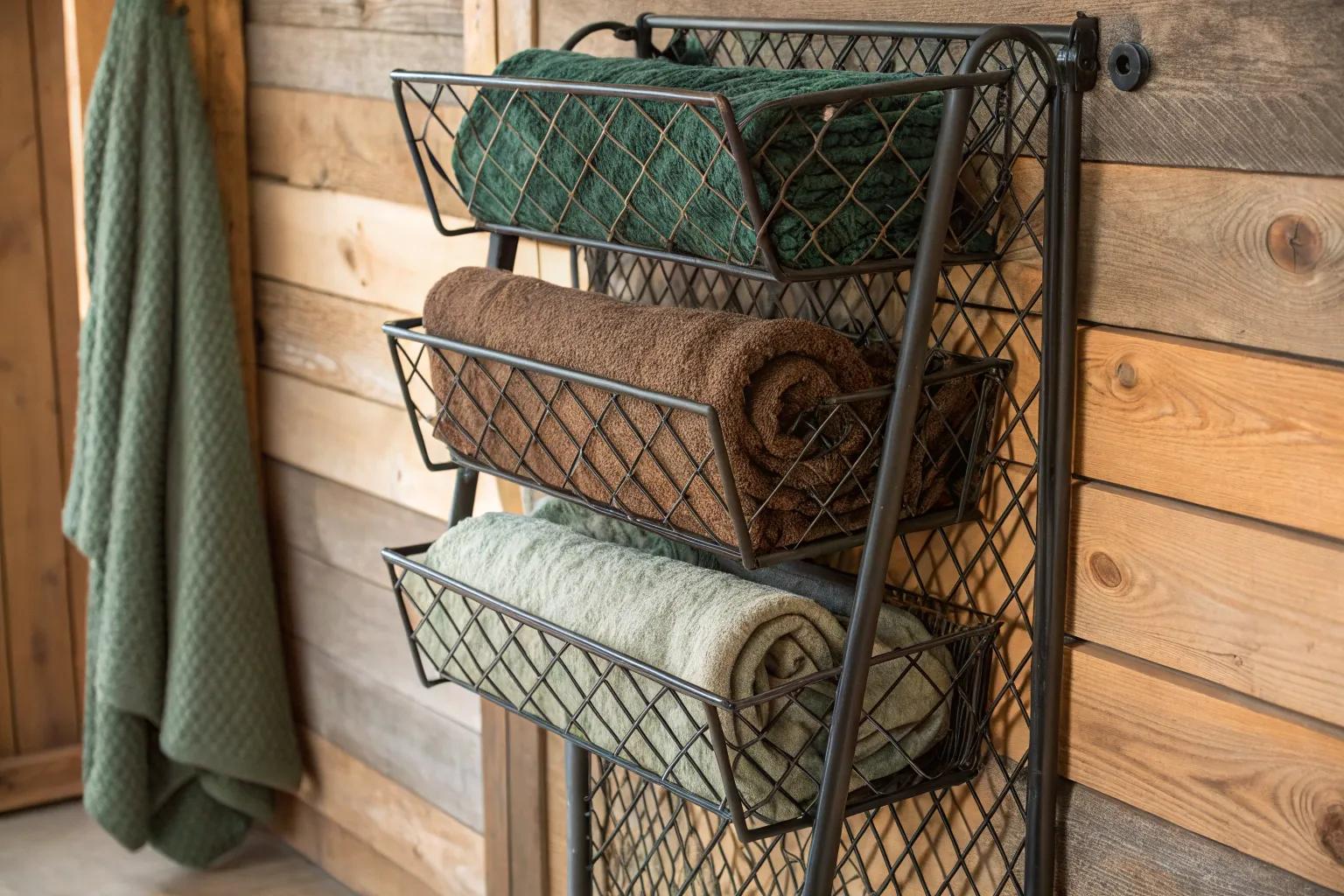 Tuck a hay feeder into a corner for a chic space-saving solution. I’ve found this setup perfect for my small studio, keeping my blankets handy without taking up too much room.