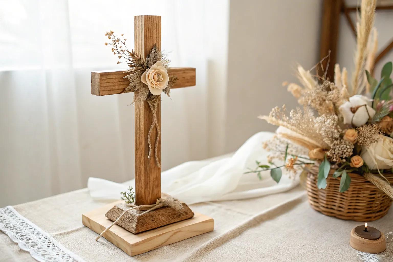 - Small Wooden Cross Ornament: Add a spiritual touch to your wreath with this elegant wooden cross centerpiece.