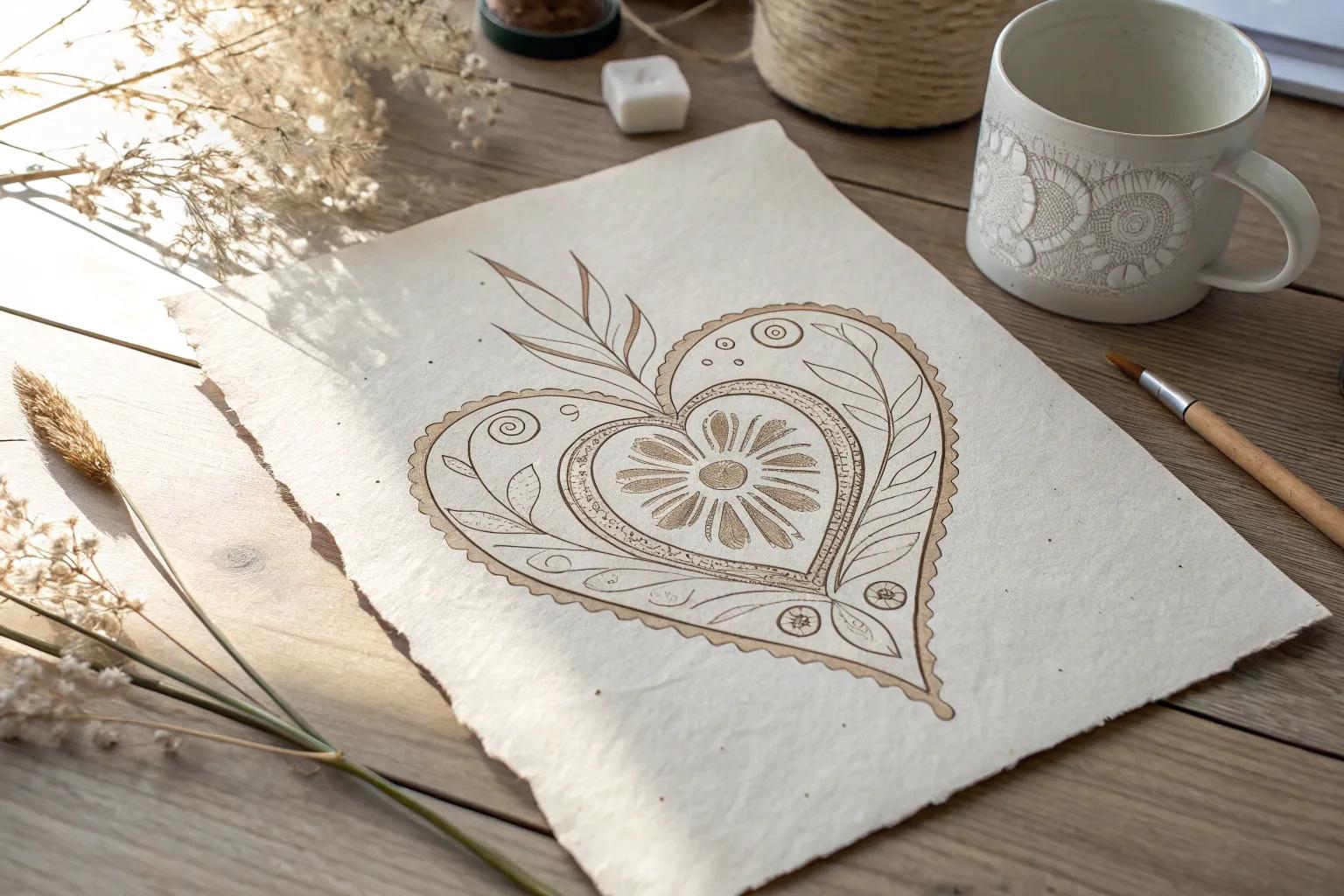 For a touch of realism, sketch an anatomical heart. Add some flowers or vines to give it an artistic twist—a beautiful blend of science and art that would also elevate these heart-shaped Valentine box ideas.