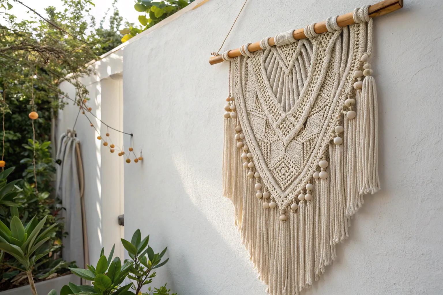 Craft a macramé plant hanger to elevate your greenery game. It’s one of my favorite home decor crafts for adults. I made a few last spring, and they add a boho-chic vibe to my balcony.