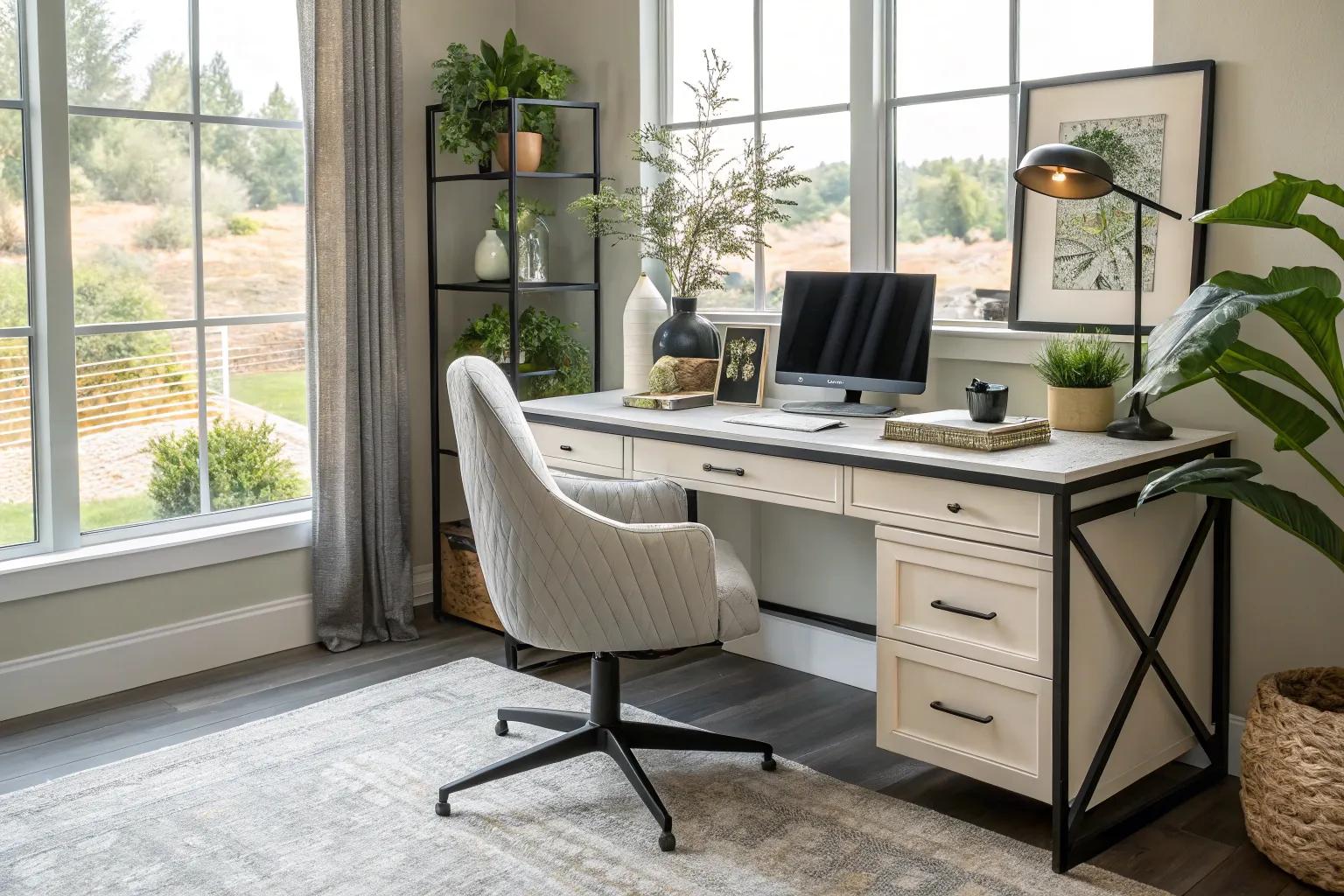 - Neutral Office Desk: Enhance your workspace with a neutral desk that complements any decor style effortlessly.
