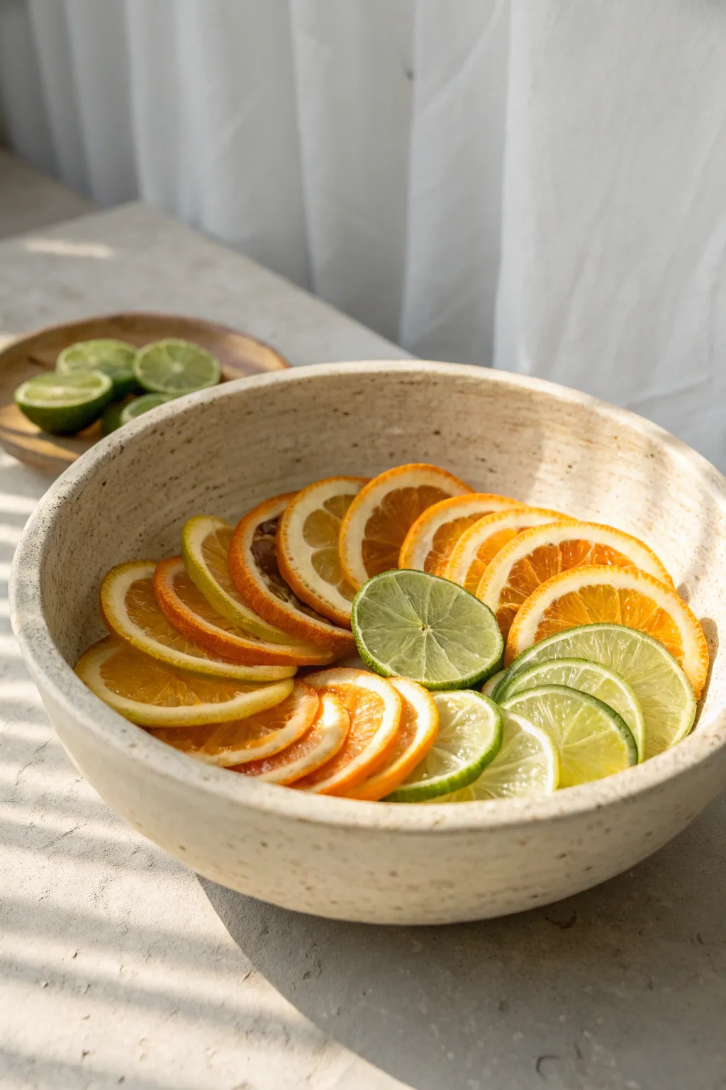 Stack different fruit slices for a layered effect. This technique adds depth and dimension, making your arrangement look professionally crafted.