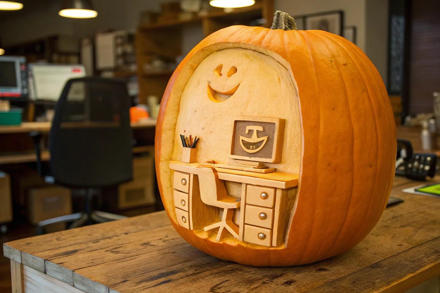 5. Miniature Office Inside a Pumpkin