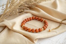 Pair red clay beads with lava rocks for a bracelet that doubles as an essential oil diffuser. The porous lava rock absorbs the oils, allowing you to enjoy aromatherapy on the go. This is just one of many functional bead bracelet ideas. It’s my favorite way to carry calming lavender scent throughout the day.