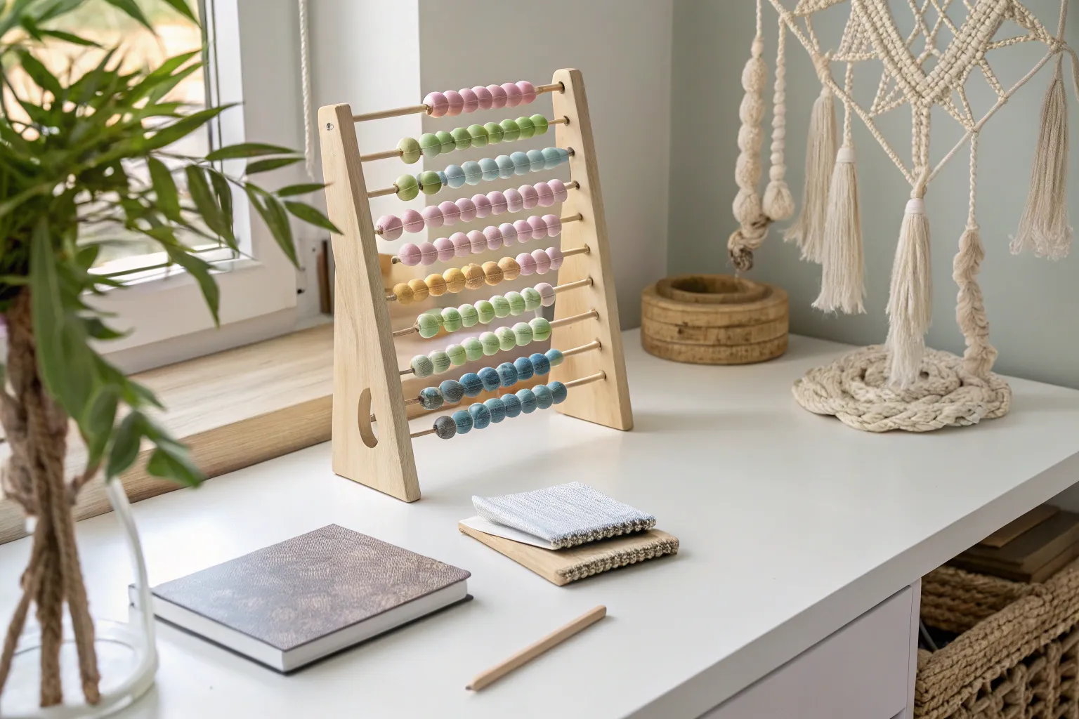Design a fabric wall hanging using colorful yarns and a wooden dowel. I made one with a geometric pattern and it added a vibrant splash to my studio.