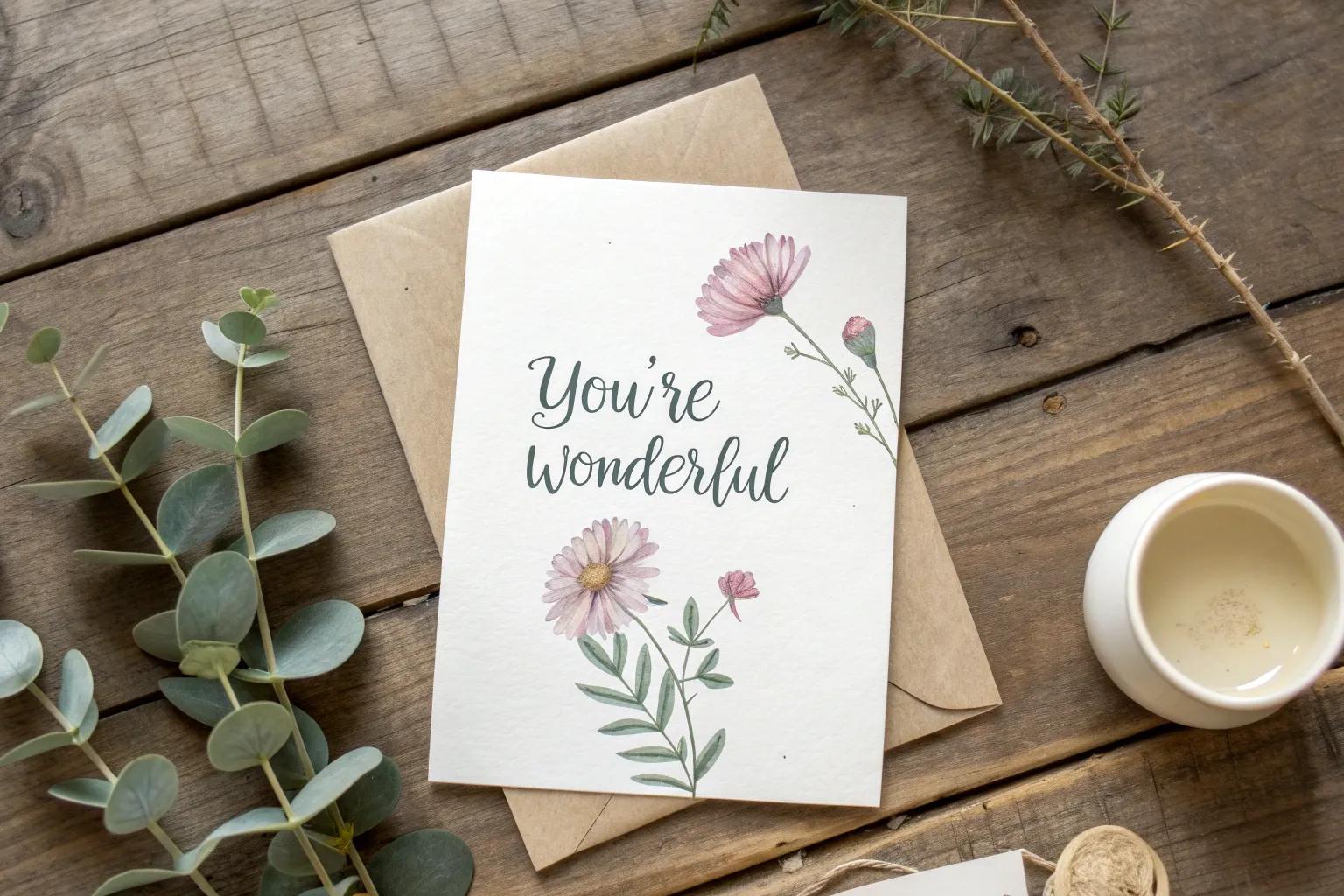 Similar to other thoughtful greeting card ideas, you can share an uplifting quote that resonates. I often use quotes that align with my values and experiences.