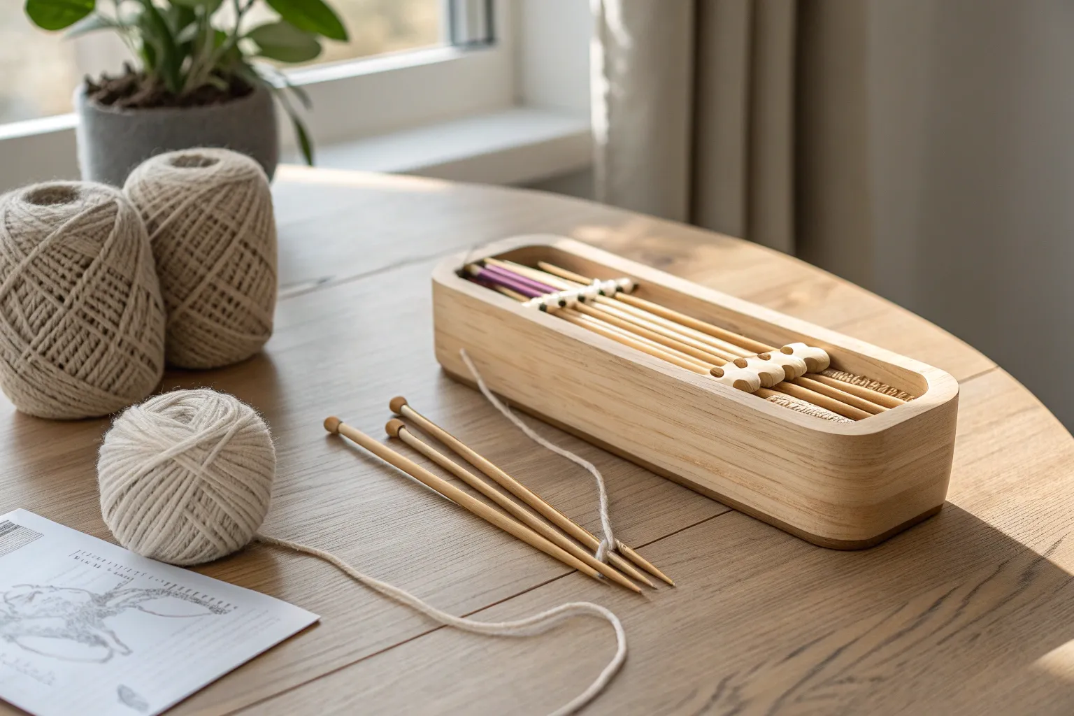 • Natural Woven Storage Basket: Enhance your craft space with a charming woven basket, perfect for storing knitting needles.