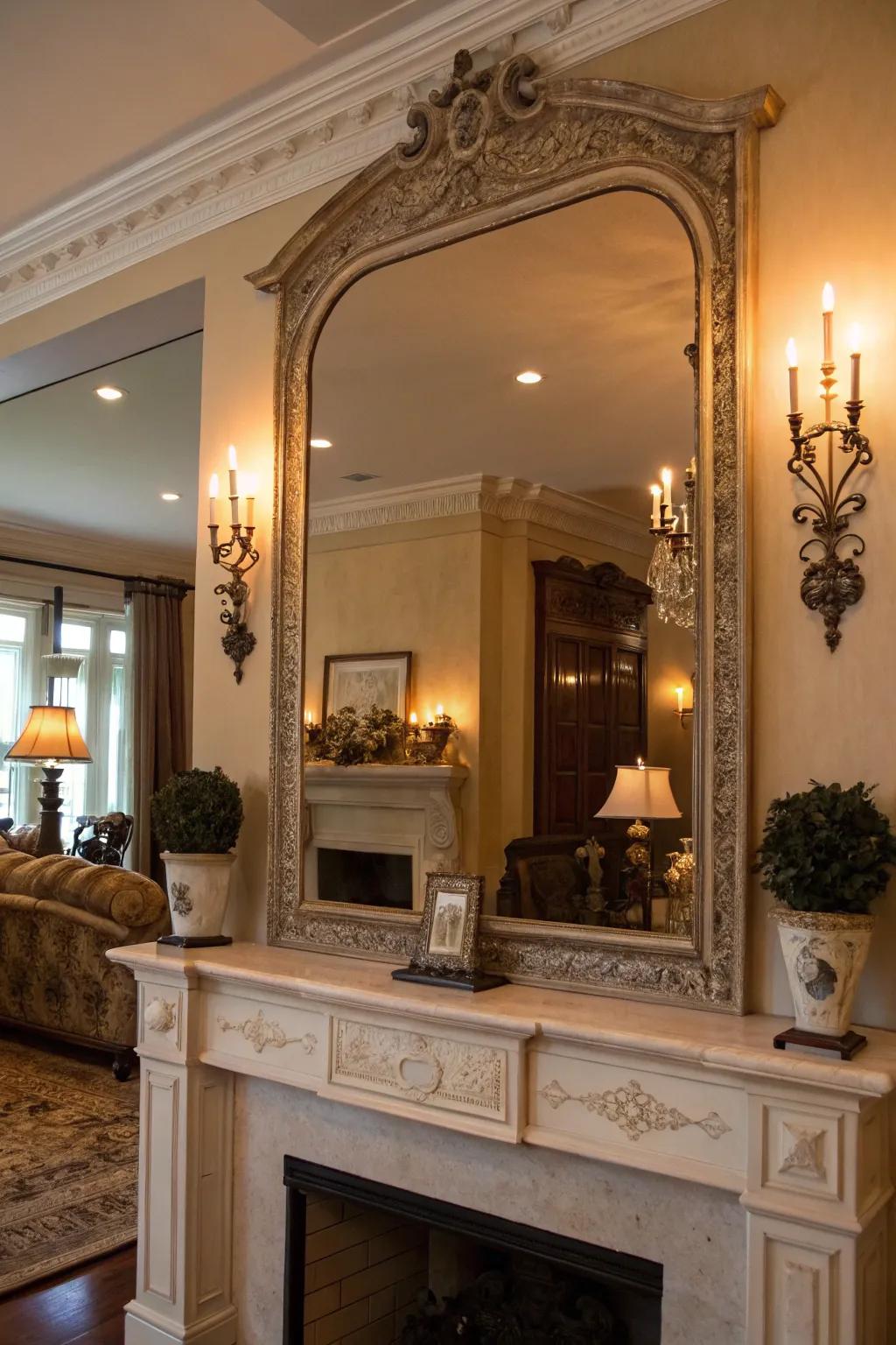 - Decorative Wall Sconces: Pair wall sconces with your mirror to add ambient lighting and accentuate the setup over your mantel.
