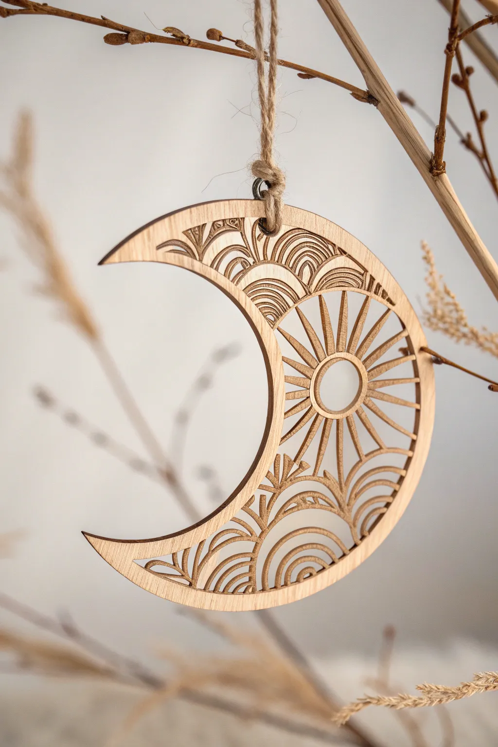 - Wooden Laser Cut Ornaments: Create a whimsical night scene with intricately designed wooden star and moon ornaments.