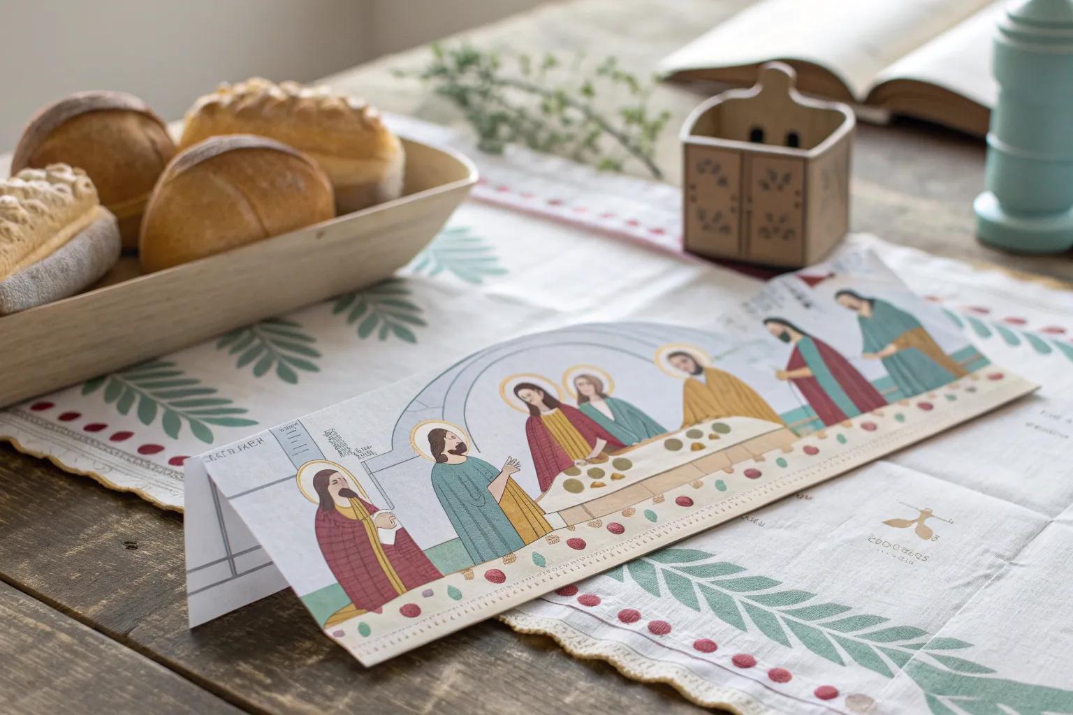 Design a placemat that maps out the Last Supper. This craft idea not only decorates your dining table but also sparks meaningful conversations at meal times.
