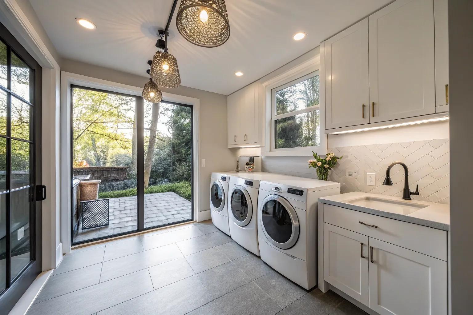 - Modern Geometric Pendant Light: Transform your laundry room with a modern geometric pendant light, offering sleek style and illumination.