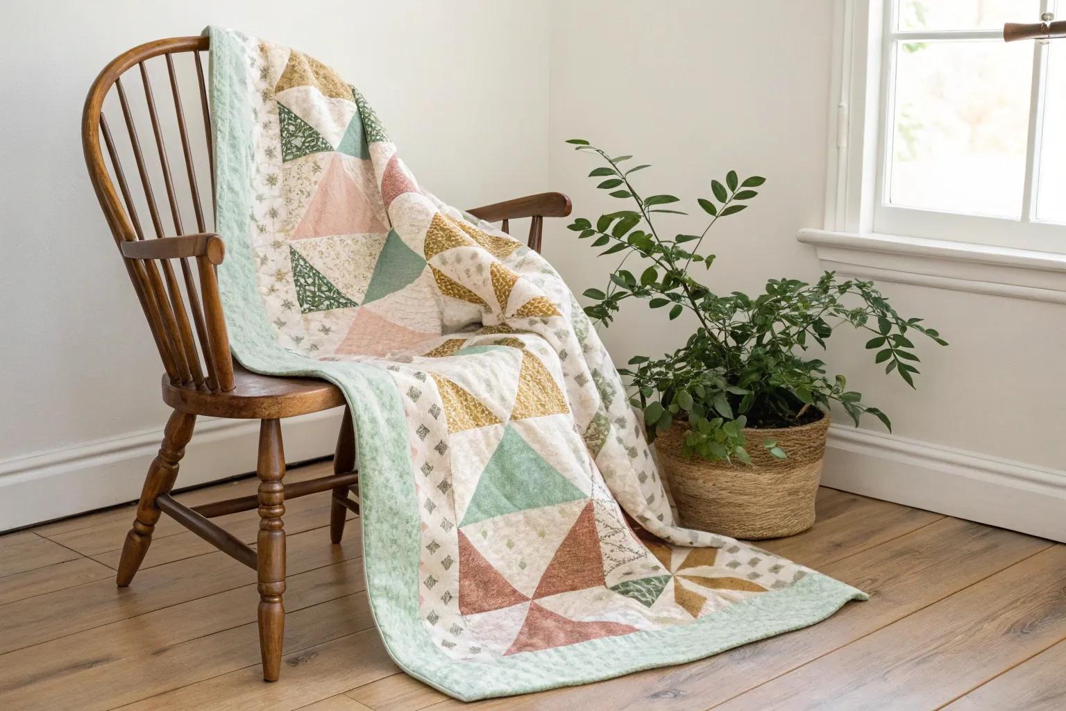 Capture the essence of nature with a quilt featuring earthy tones and leafy prints. This style is a perfect fit for many seasonal fall quilt ideas. I love how this design brings a bit of the outdoors inside.
