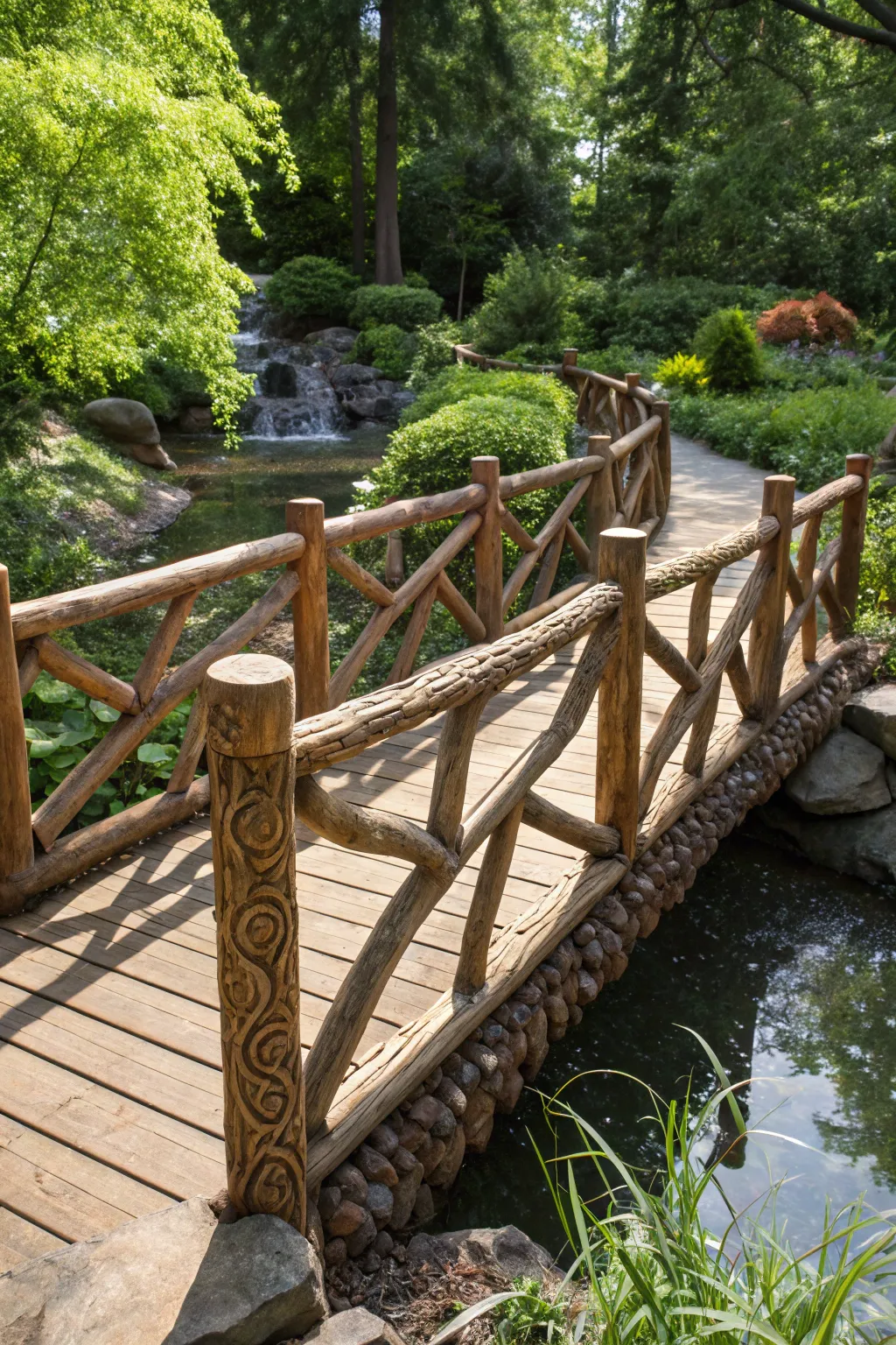Use reclaimed wood for the bridge planks to give it a vintage feel. Not only is this sustainable, but it also tells a story with every step.