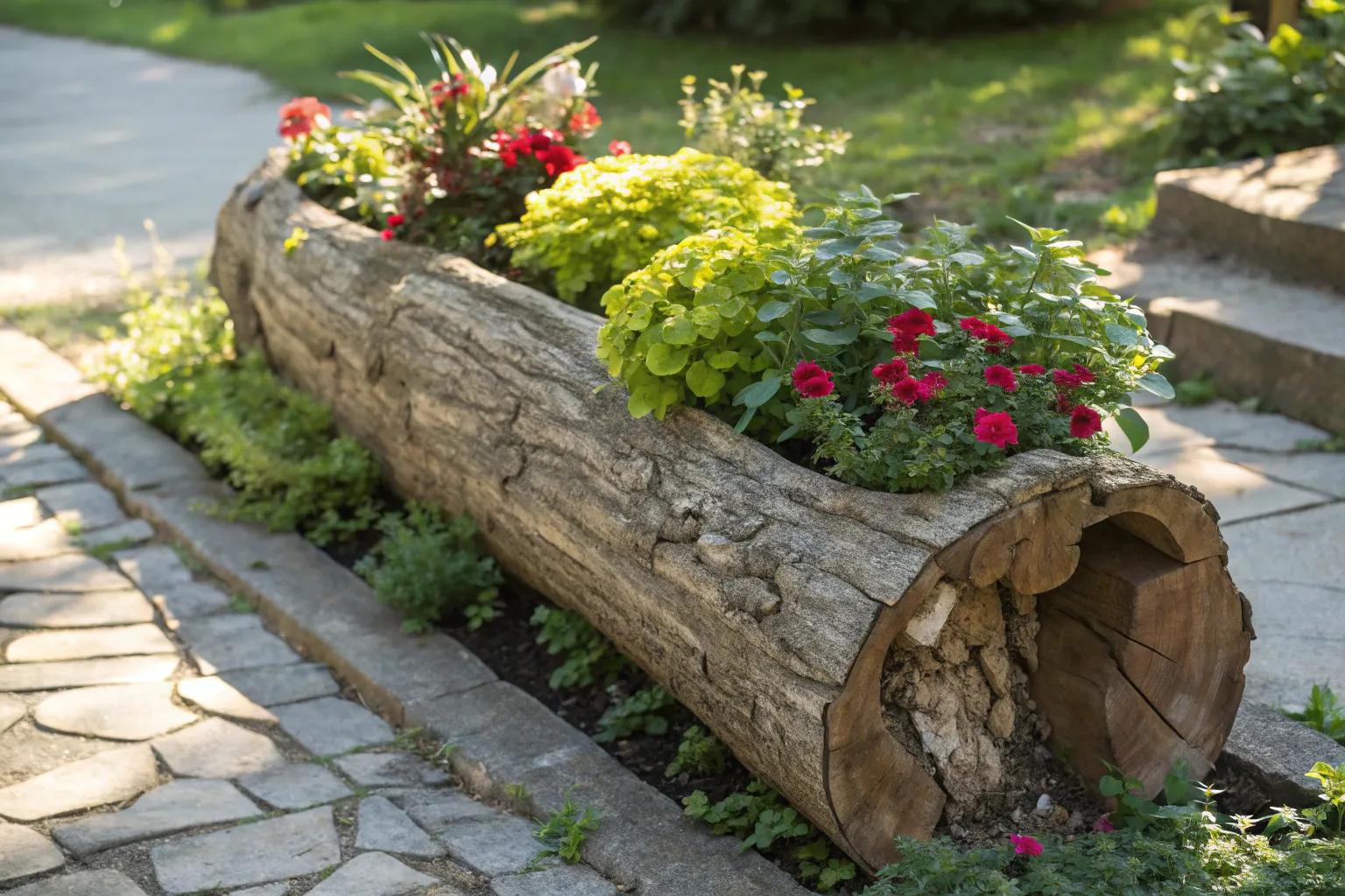 Use logs as edging for your garden beds to keep everything tidy and contained. The contrast of wood against colorful blooms is simply stunning.