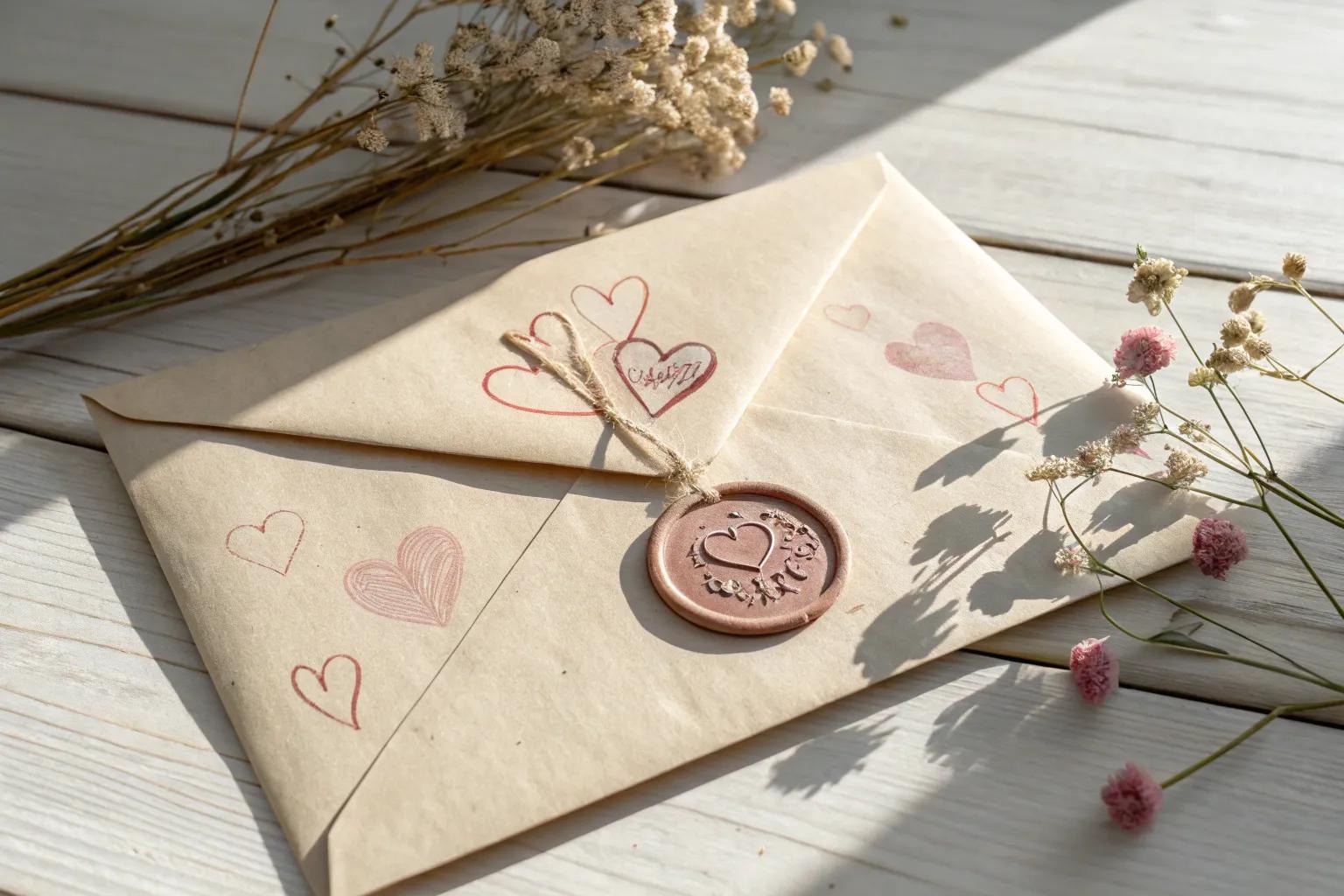 Include a mini Polaroid photo clipped to the envelope for a personal touch. I usually capture moments that are special to us, making the letter even more heartfelt.