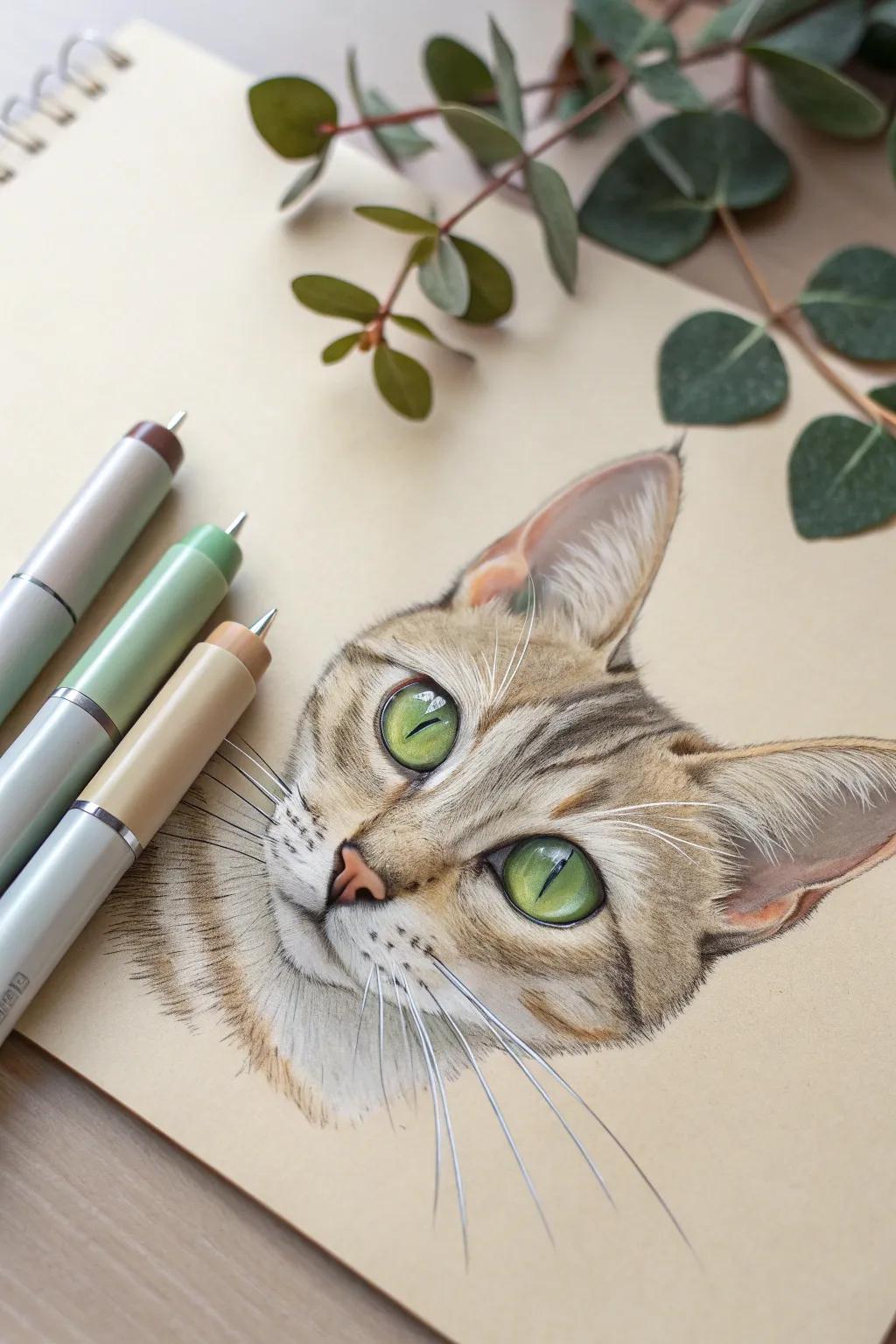 Capture the essence of your furry friend with pet portraits. Use markers to highlight their unique features and personality!