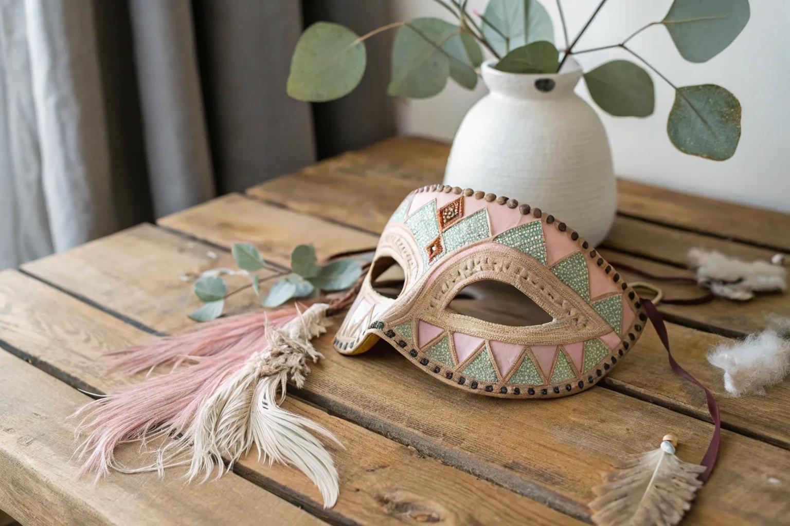 Add a touch of boho-chic with colorful beads and sequins. I adore how these embellishments turn a simple mask into a dazzling masterpiece.