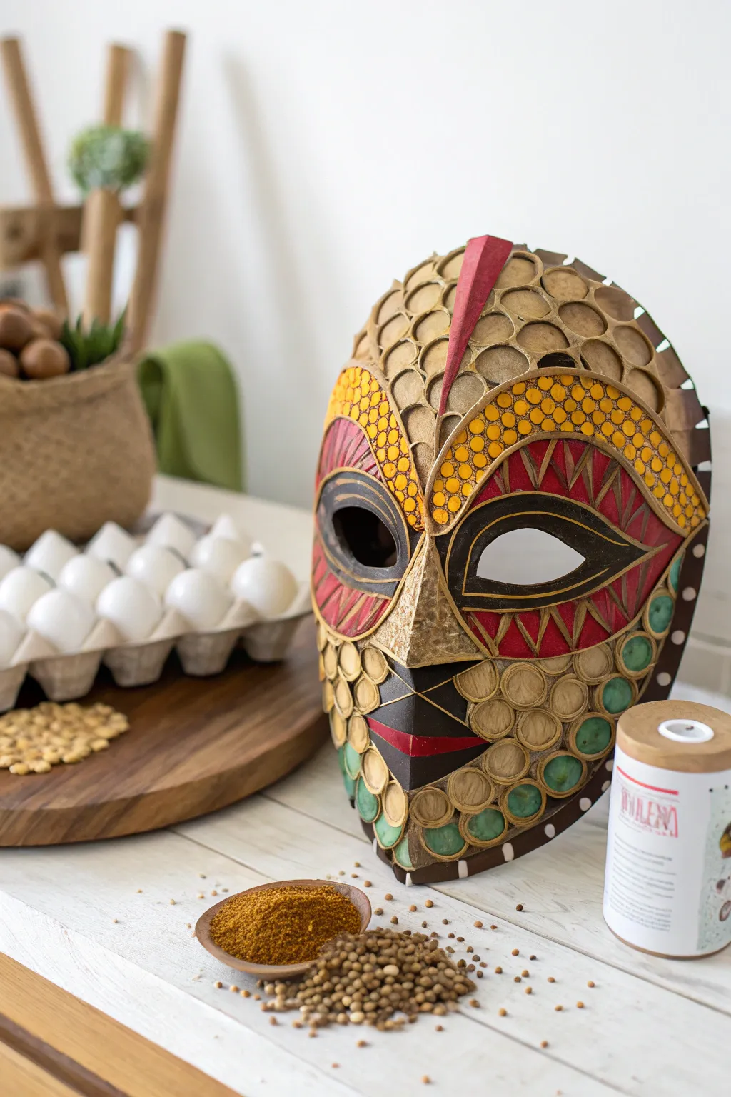 Turn everyday trash into treasure by crafting masks out of recycled materials. It’s amazing what you can achieve with cereal boxes and egg cartons!