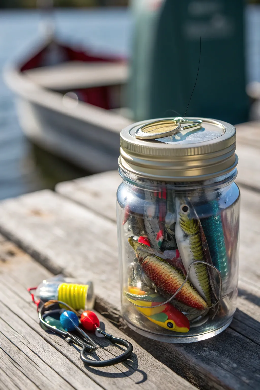 Pack a jar with lures, hooks, and fishing line for the fishing enthusiast. My uncle, an avid angler, found it to be a brilliant gift.