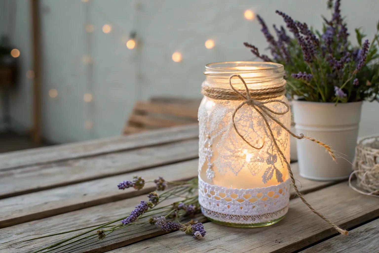 Glue lace fabric to your jar for a romantic, vintage look. These lanterns were a hit at my friend’s wedding, casting delicate shadows everywhere. For a different style, check out these DIY jar decoration ideas.