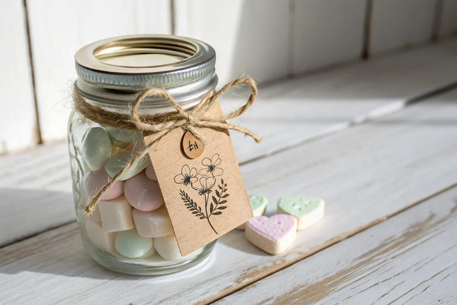 Design custom labels or tags for each jar to match your event’s theme. This personal flair is essential for creating memorable mason jar wedding favors.