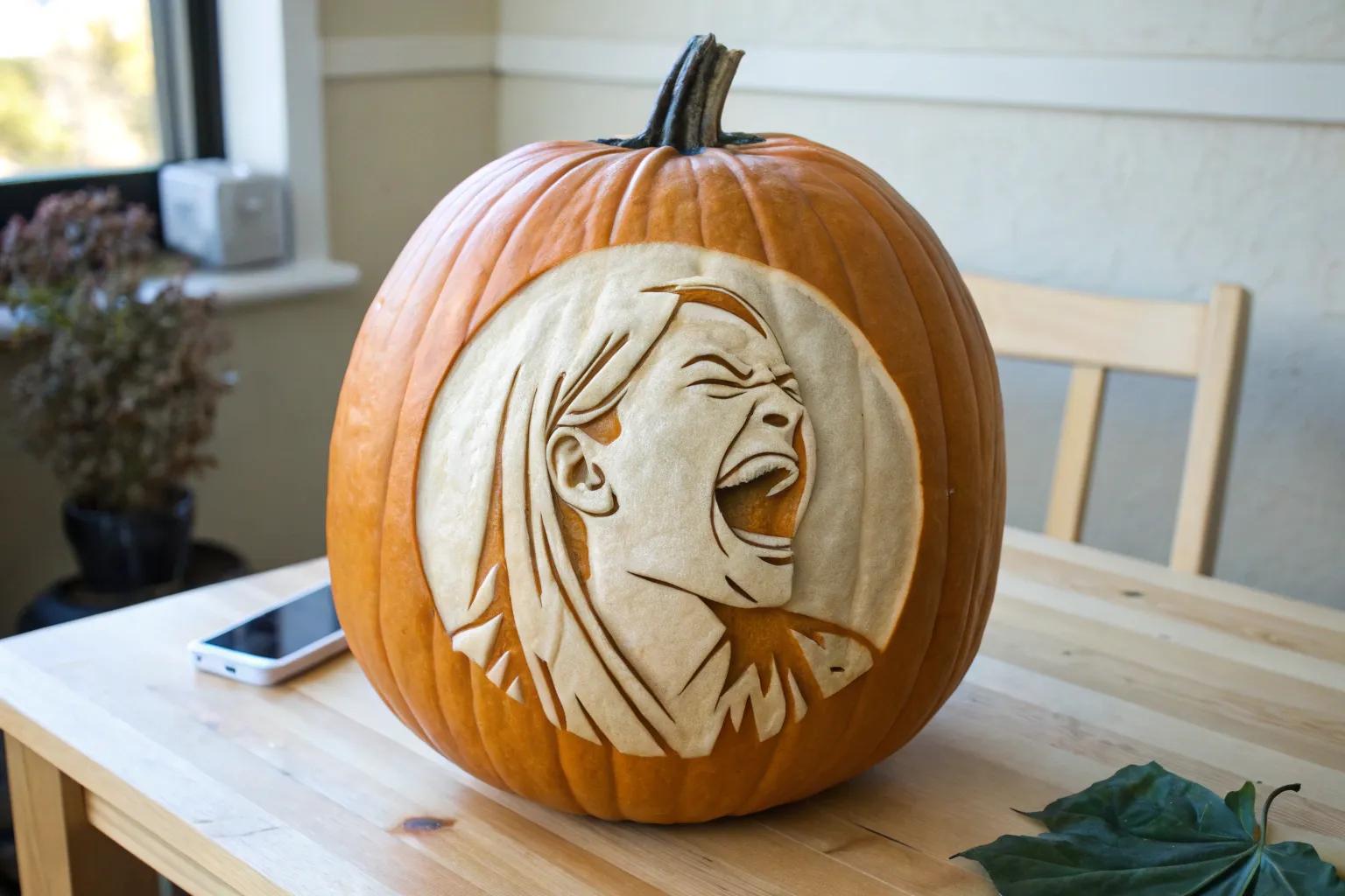 Create a pumpkin that screams internally with wide eyes and a tight lip. It’s a silent scream that speaks volumes.