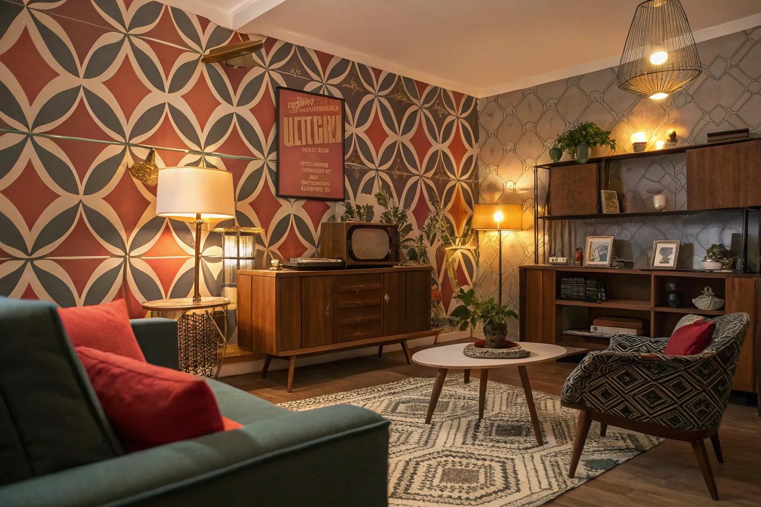 - Retro Geometric Wall Panels: Create a striking focal point using retro geometric wall panels for a vibrant, textured look.