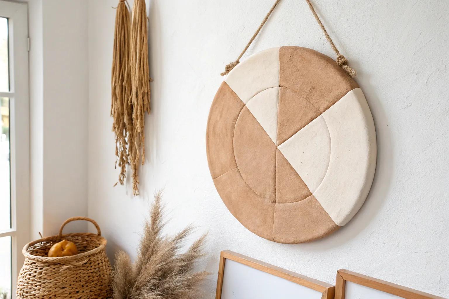 Mix clay with fibers for a boho-inspired piece. The combination of materials adds texture and interest, a popular approach in boho clay wall decor ideas that makes your decor truly stand out.