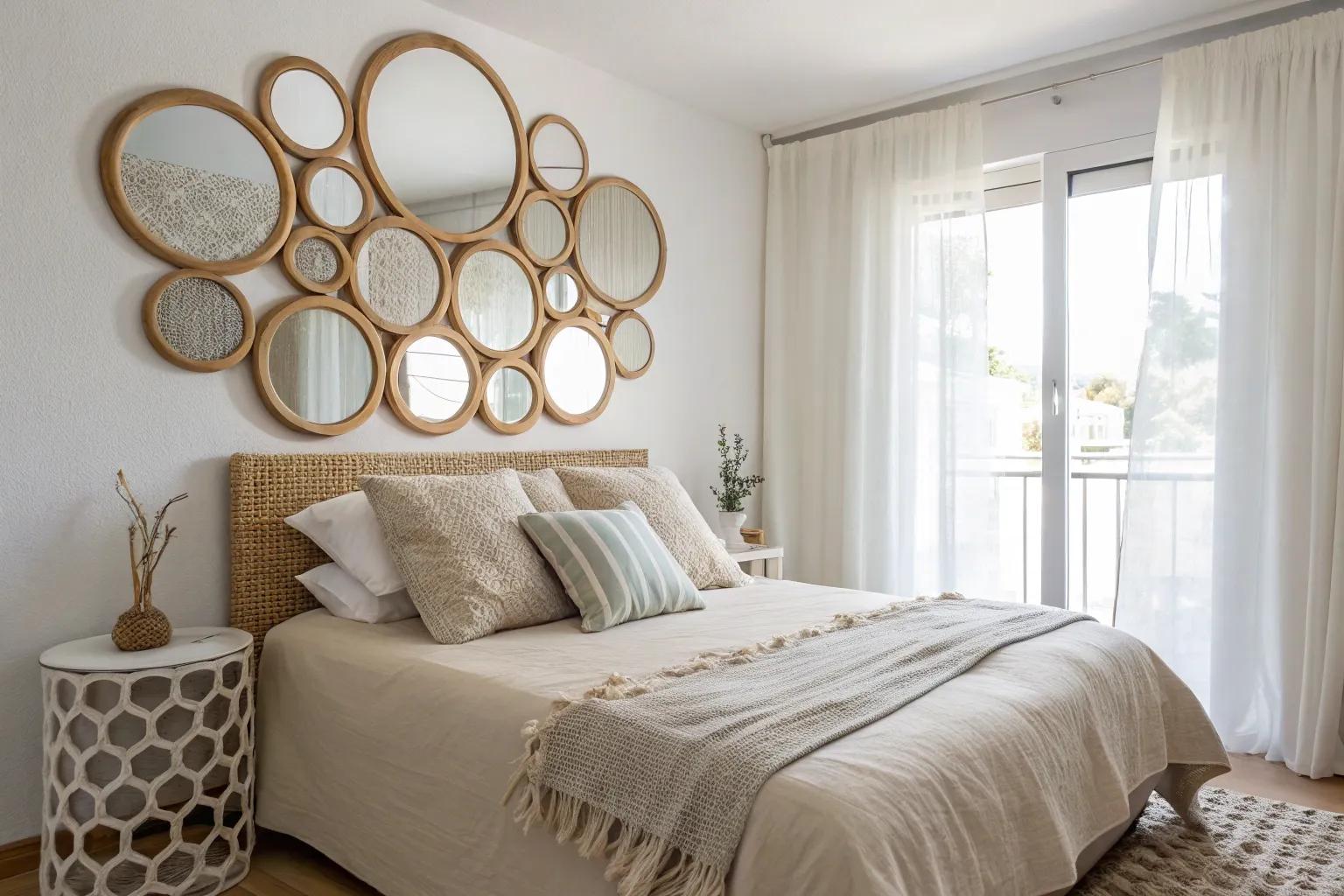 - Decorative Round Mirror Collection: Create a striking focal point with a collection of decorative round mirrors for your headboard area.