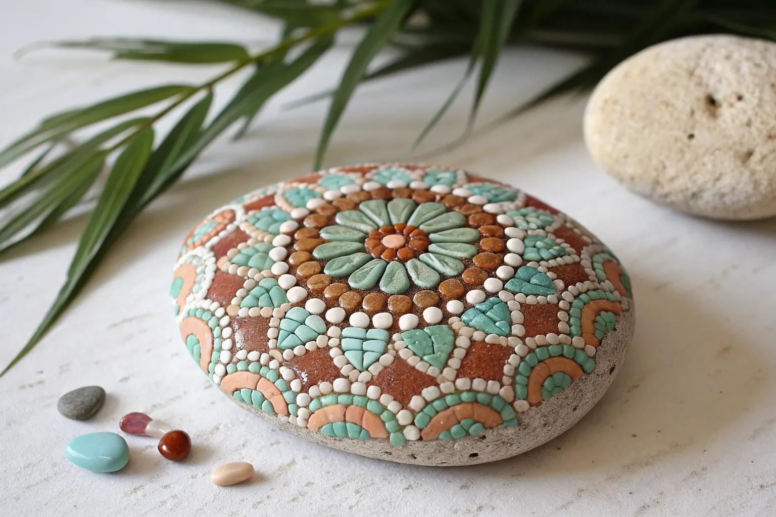 Design a mosaic that reflects the flow of a river, using smooth, flowing patterns. In a similar vein to other nature-inspired rock painting ideas, this natural aesthetic creates a calming and serene atmosphere.