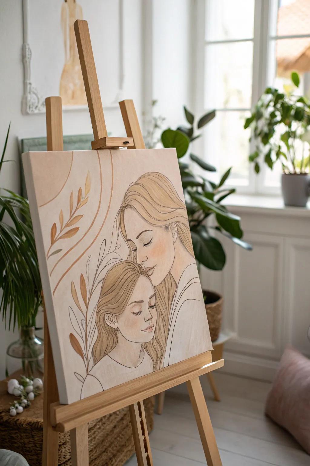 Create personalized portraits that reflect your personalities. This can be a fun challenge to express who you both are through art, and it’s also a wonderful option if you’re looking for things to paint for Mom ideas.