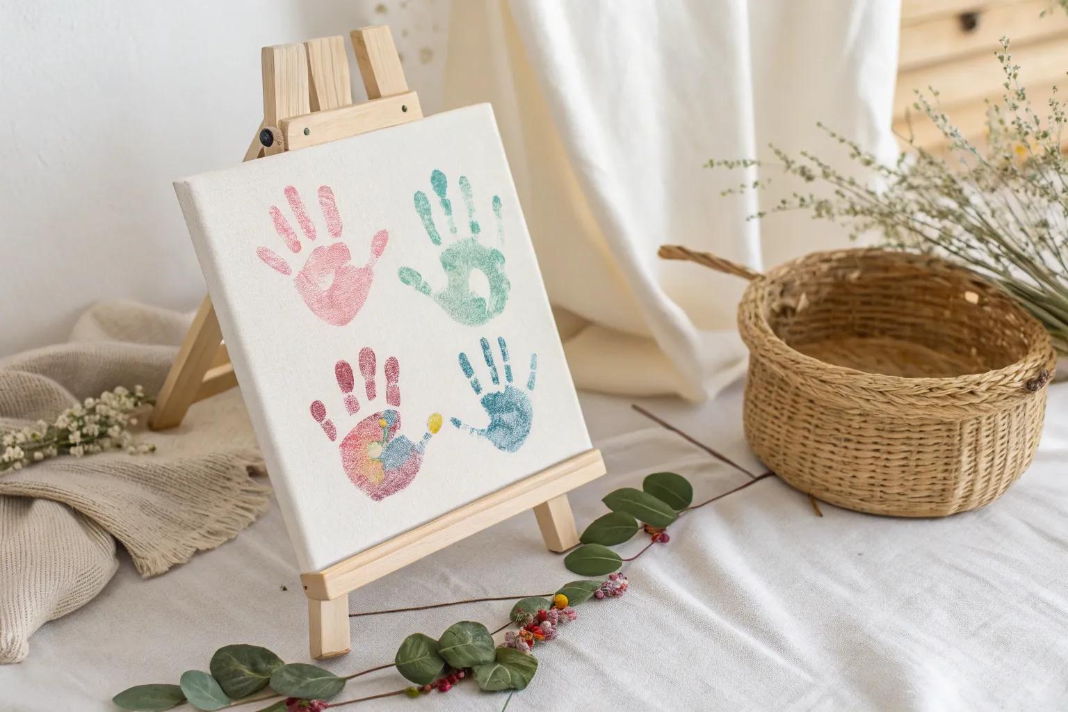 - Mini Wooden Easel Stand: Elevate your child’s artwork with this charming easel, ideal for displaying their handprint garden.