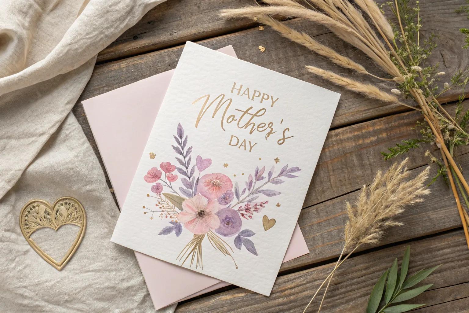 Paint a watercolor background for a soft and artistic touch. It’s a technique I adore, featured in many watercolor Mother’s Day cards for its delicacy and charm.