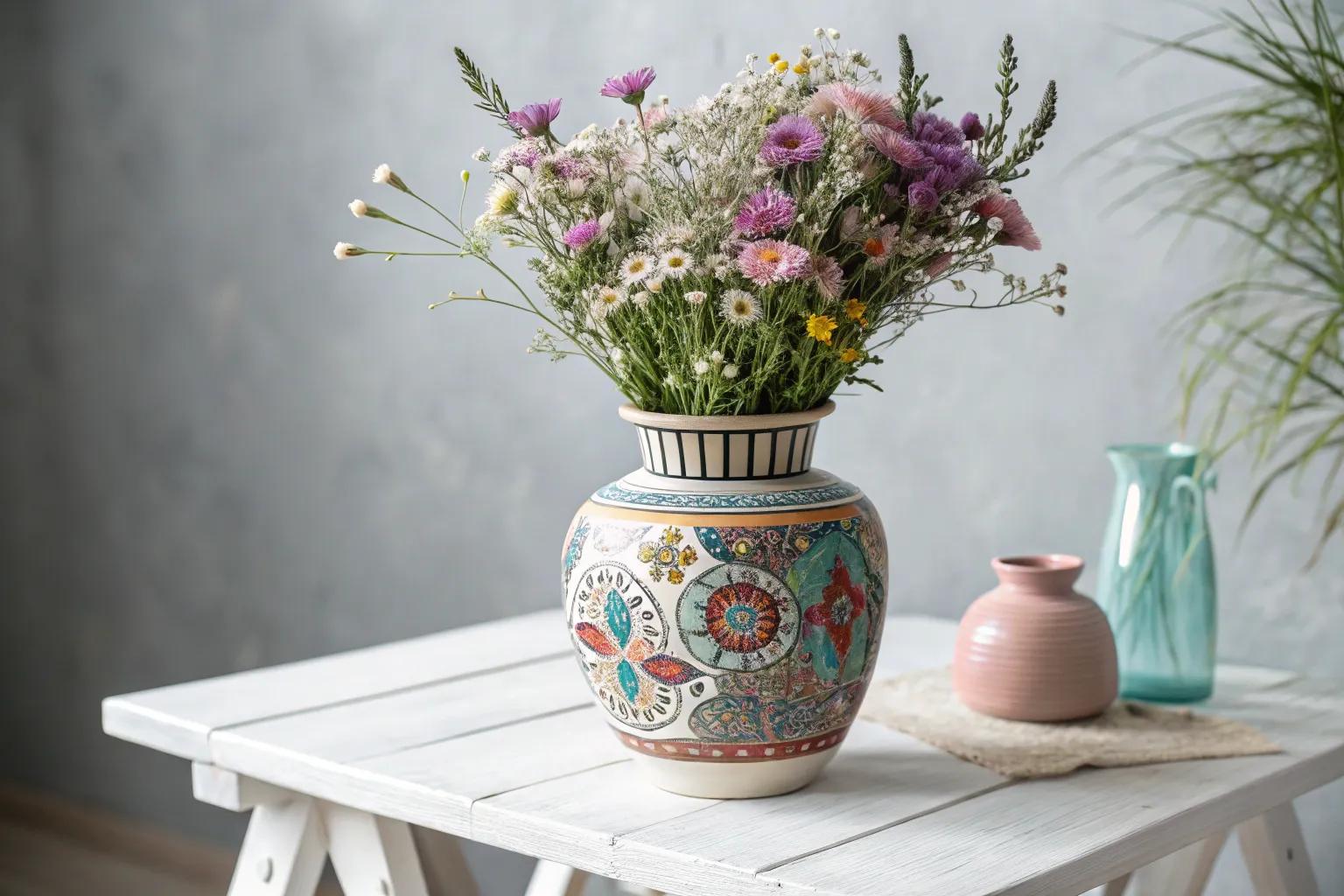 Turn an old glass bottle into a chic vase with paint and creativity, a perfect project from our list of Mother’s Day DIY gift ideas, for displaying fresh blooms. It’s amazing how a bit of upcycling can transform trash into treasure.