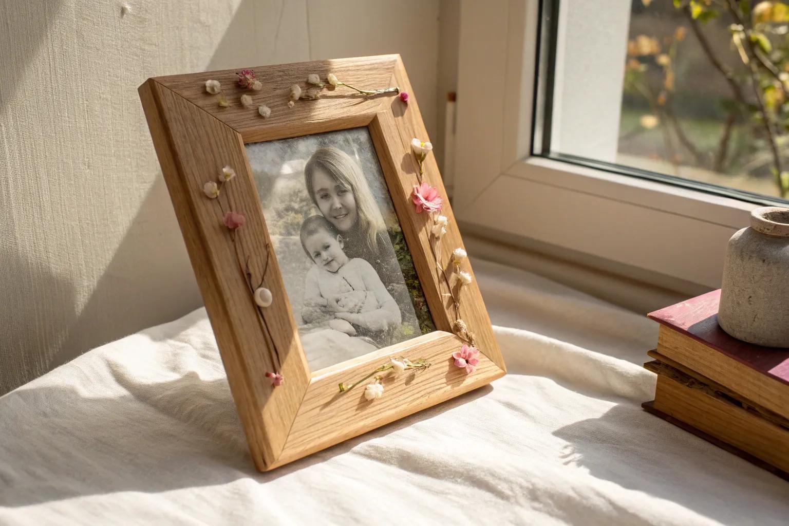 Create a photo collage frame that tells a story of cherished memories. Mix and match different sizes and shapes of photos for a playful and heartwarming gift.