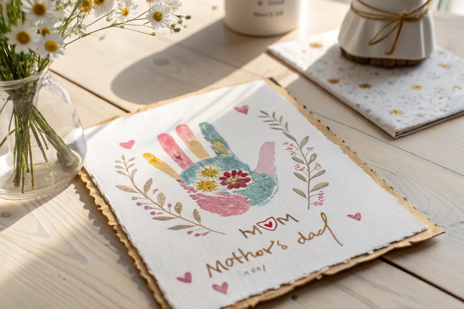 Crafted with love: A heartwarming handprint card for Mother's Day.