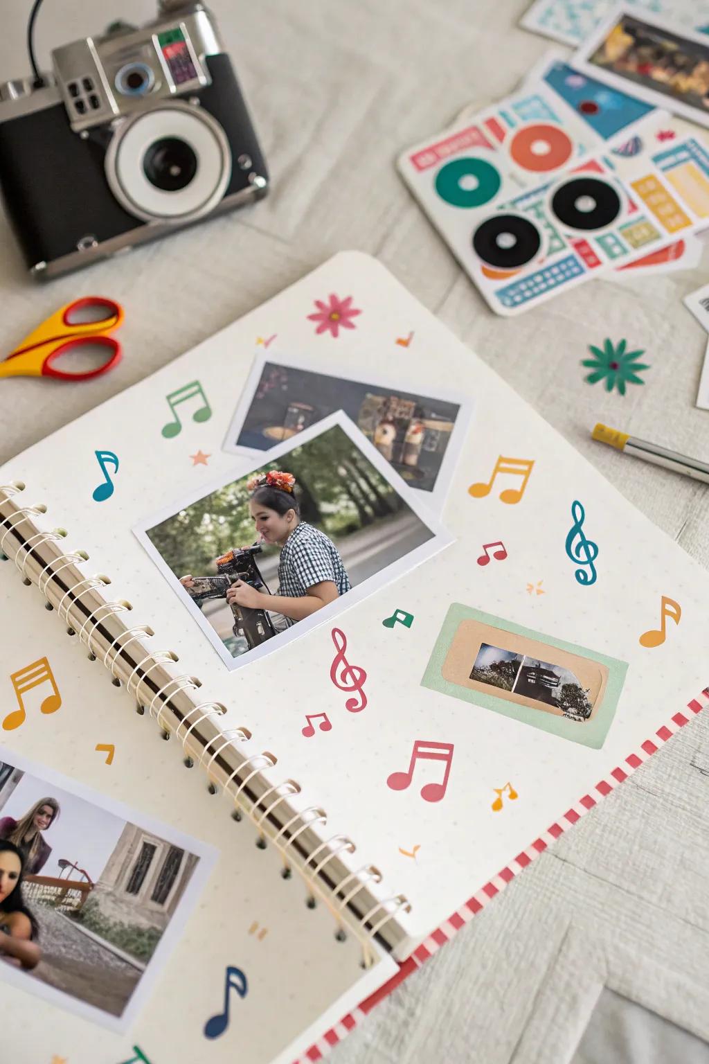 Enhance your photos with themed photo corners—one of several easy scrapbooking ideas that reflect your love for music. Use stickers or cutouts shaped like notes or instruments. It’s a small detail that makes a big difference.