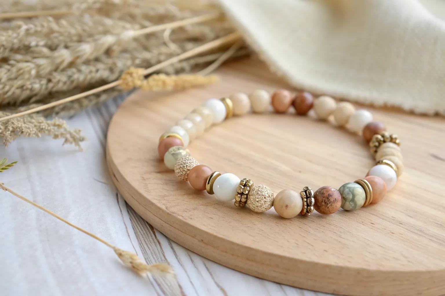 Add a touch of flair by interspersing gold or silver spacer beads among your neutrals. This little pop of shine is one of my favorite ways to elevate a bracelet from everyday to extraordinary, similar to these festive Valentine’s Day bracelet ideas.