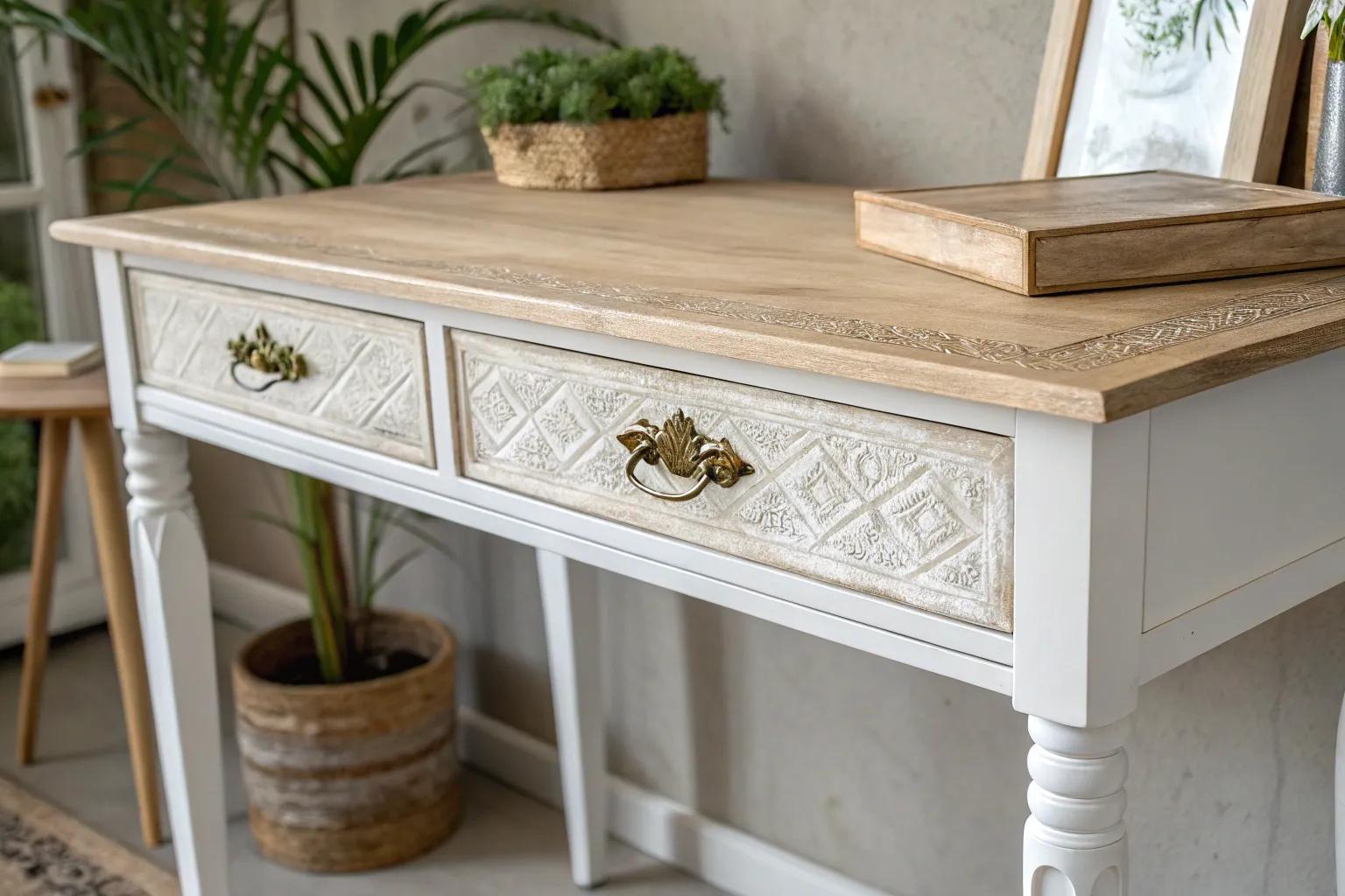 Add a metallic finish to the edges for a touch of glamour. This subtle shimmer can turn any old desk into a chic centerpiece.