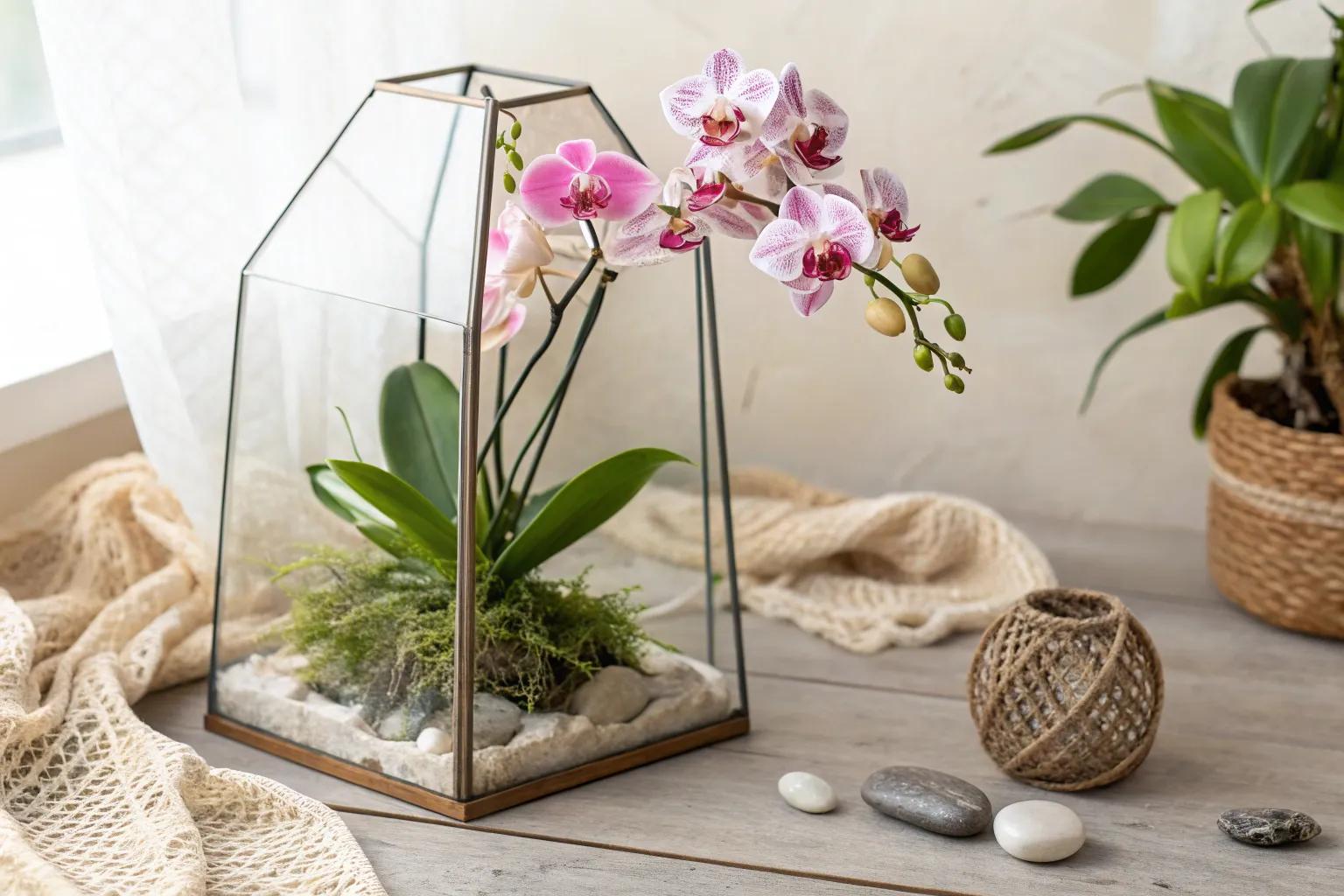 Use a closed terrarium to maintain high humidity for orchids that thrive in it. As one of many unique indoor planter ideas, this setup is particularly effective. My Masdevallia orchids have never been happier since I switched to this setup.