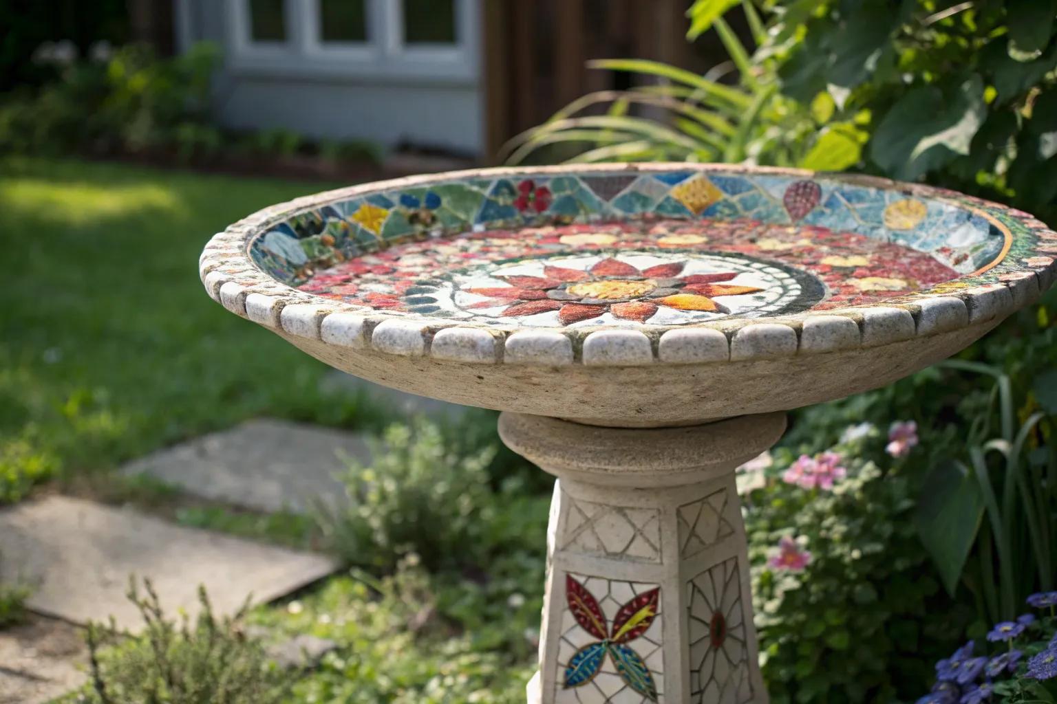 Transform a simple bird bath into a mosaic masterpiece using leftover tiles. The birds in my garden seem to love their stylish new watering hole as much as I do!