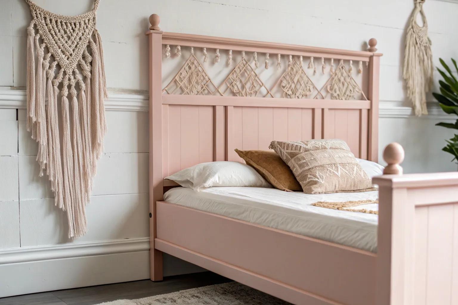 - Pastel Pink Chalk Paint: Transform your bed frame with soothing pastel pink, creating a calming bedroom haven.