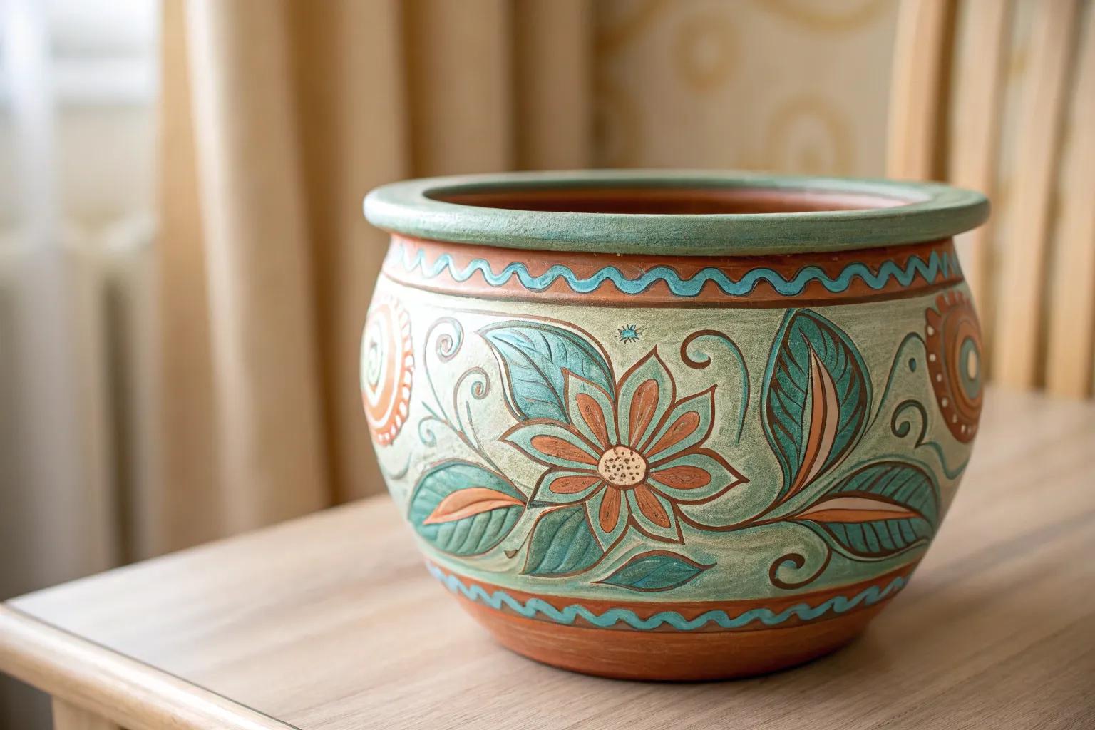 Celebrate global cultures with ethnic designs. Choosing the right paint for ceramic pots is key to making the colors pop. My pot with African tribal patterns is a tribute to cultural richness and diversity.