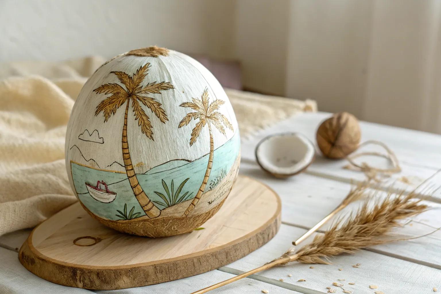 Give your coconut a nautical twist by painting it with classic blue and white stripes. While this look is crisp and clean, you can also explore textured painting ideas for an oh-so-chic coastal-themed decor.