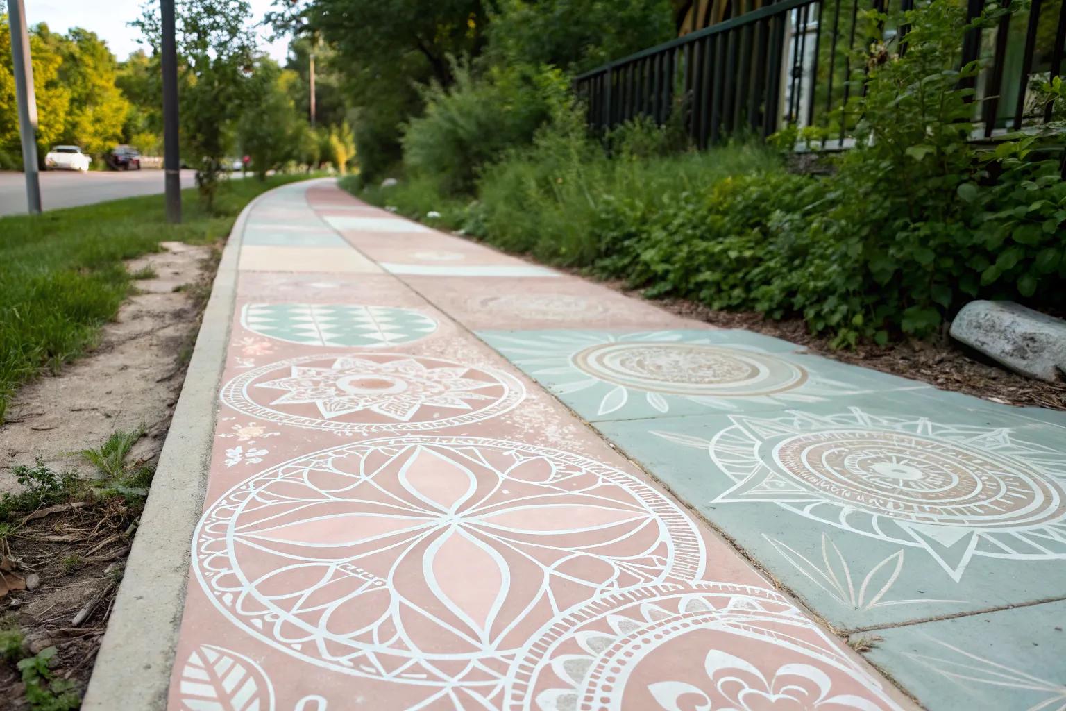Transform your sidewalk into a lively piece of art with geometric patterns. I once used triangles and hexagons to bring a modern flair to my walkway, and it was a game-changer!