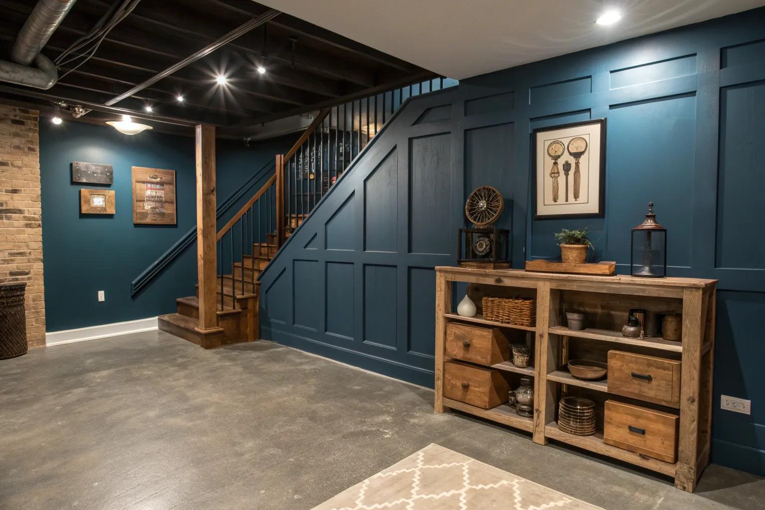 - Bright Teal Wall Paint: Transform your basement with vibrant teal wall paint, creating an inviting and unique atmosphere.